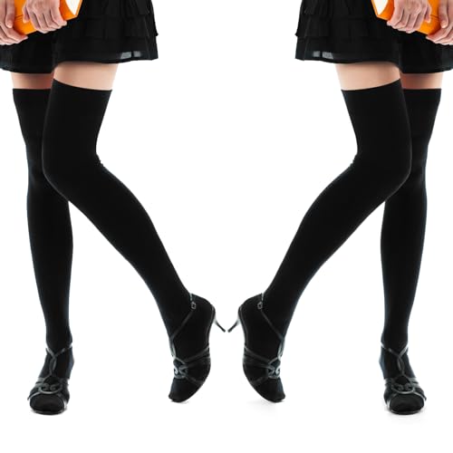 Yolev 2 stycken Overknee strumpor för kvinnor 80 cm knästrumpor långa varma höga strumpor kvinnor – flickor lårstrumpor benvärmare, svart, one size