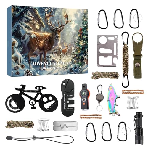Överlevnadskit adventskalender 2024 män, överlevnadsverktyg julkalendrar, 24 dagar jul nedräkningskalender, jul överlevnad verktygssats adventskalender