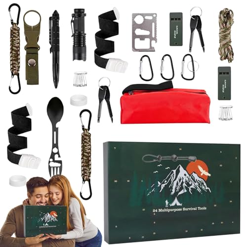 Survival Kit adventskalender 2024 | 24 dagars jul nedräkningskalender med överlevnadssatser | Julöverlevnadssats för män – överlevnadskit, adventskalender för utomhusentusiaster