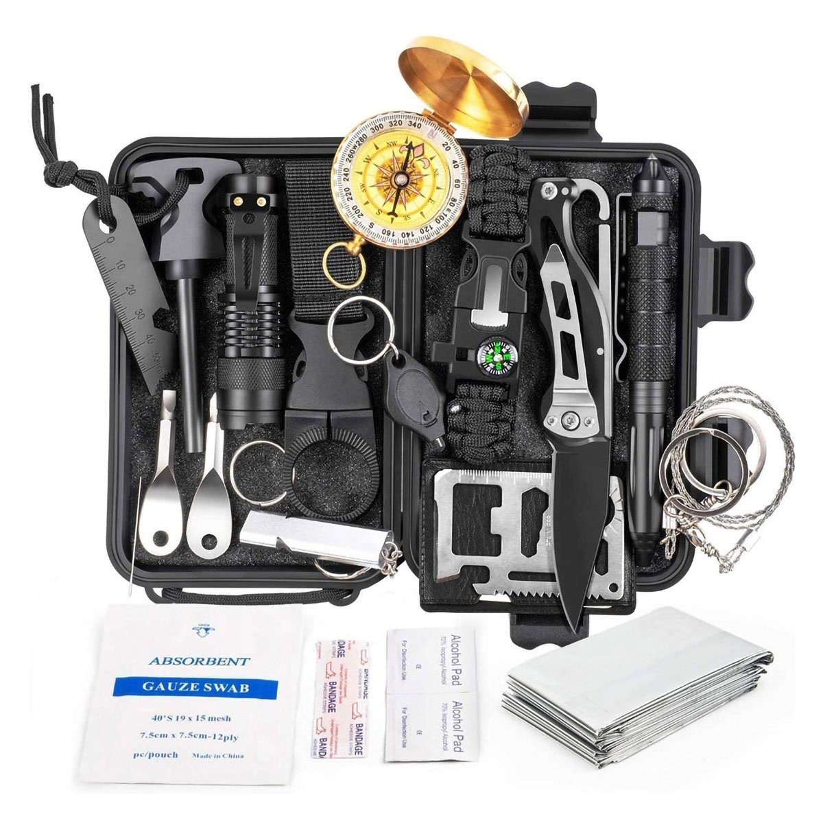 Överlevnadskit för kris, camping, äventyr, vandring och jakt