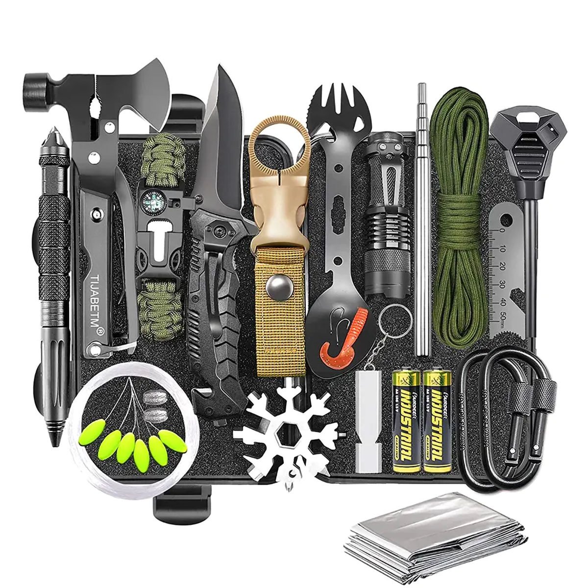 Överlevnadskit 25 i 1, professionellt nödset utomhus hemma, premium set kniv utomhusutrustning, överlevnadsutrustning, för camping, bushcraft, vandring, jakt, äventyr, fäder, män