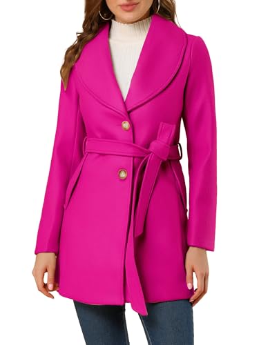 Allegra K Kvinnor Långa Kappor Enstaka Bröst Krage Sjal Överrock Band Långärmad Vinter, Röd rosa, M