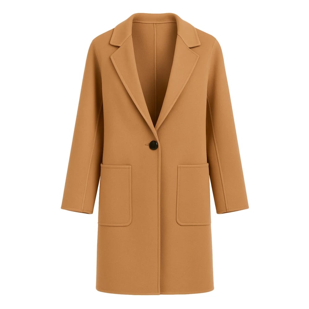 Vinterkappa för damer, lång ullrock, varm övergångskappa, enfärgad blazer med revers, elegant vindjacka, moderiktig överrock, kaki, S