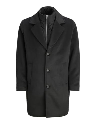 Springrain Herr-rock i ullblandning, enkelknäppt överrock med hakslag, värmande design, trenchcoat för vinter, Svart, XS