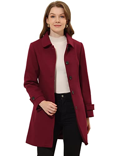 Allegra K Vinterytterkläder för kvinnor överrock Peter Pan krage mitt på låret A-linje enkelknäppt ärtrock, Vinröd, L