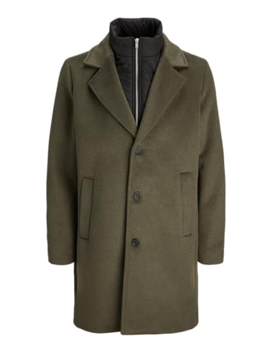 Springrain Herr-rock i ullblandning, enkelknäppt överrock med hakslag, värmande design, trenchcoat för vinter, Khaki, XL