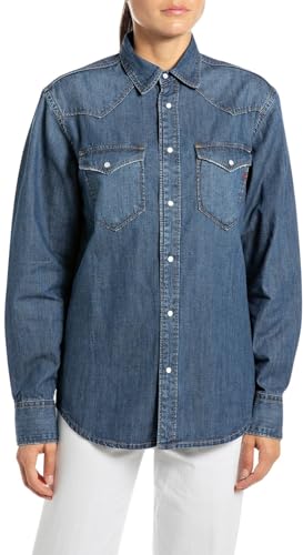 Replay Dam oversize jeansskjorta, 009 medium blå, XS