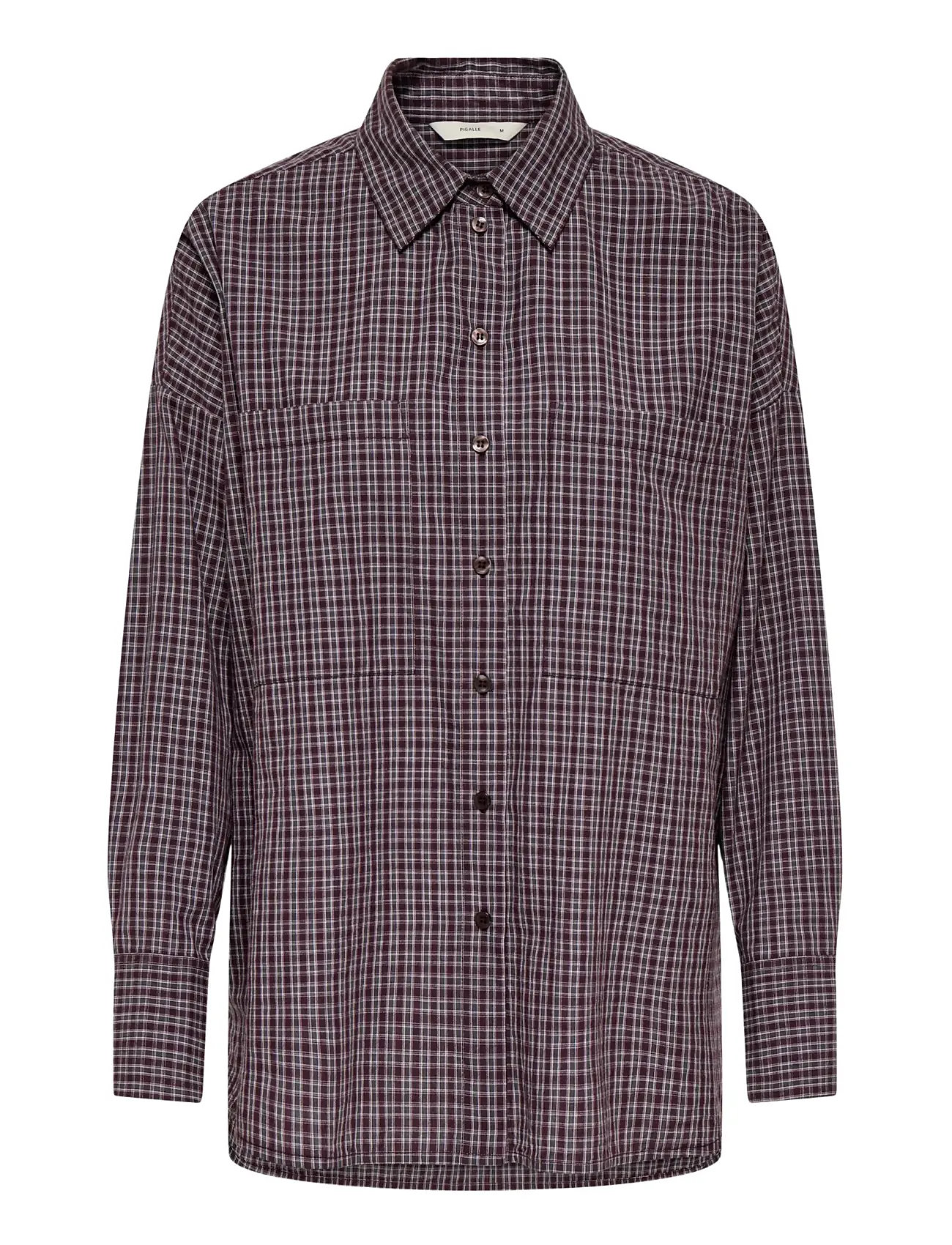 ONLY Onlfenna L/S Oversize Check Shirt Wvn - Burgundy - XS