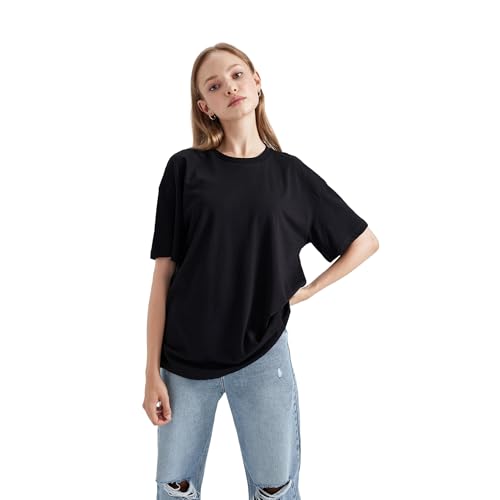 DeFacto dam-t-shirt – klassisk basic oversize skjorta för kvinnor – bekväm t-shirt för kvinnor, svart, L