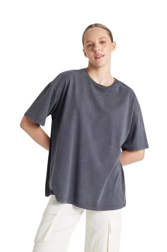DeFacto dam-t-shirt – klassisk basic oversize skjorta för kvinnor – bekväm t-shirt för kvinnor, Grå melange, XS