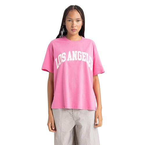 DeFacto dam-t-shirt – klassisk basic oversize skjorta för kvinnor – bekväm t-shirt för kvinnor, ROSA, L