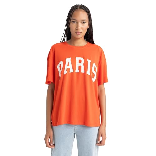 DeFacto dam-t-shirt – klassisk basic oversize skjorta för kvinnor – bekväm t-shirt för kvinnor, röd, M