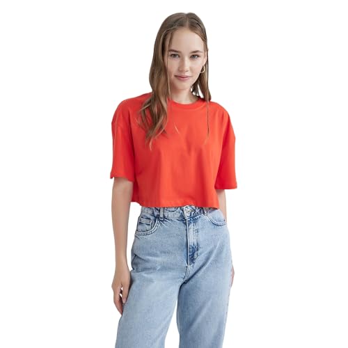 DeFacto dam-t-shirt – klassisk basic oversize skjorta för kvinnor – bekväm t-shirt för kvinnor, röd, S