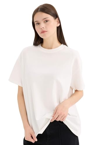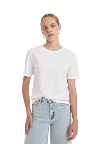 DeFacto dam-t-shirt – klassisk basic oversize skjorta för kvinnor – bekväm t-shirt för kvinnor, ecru, S