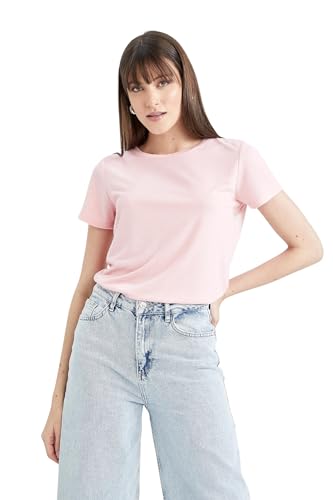 DeFacto dam-t-shirt – klassisk basic oversize skjorta för kvinnor – bekväm t-shirt för kvinnor, ROSA, S
