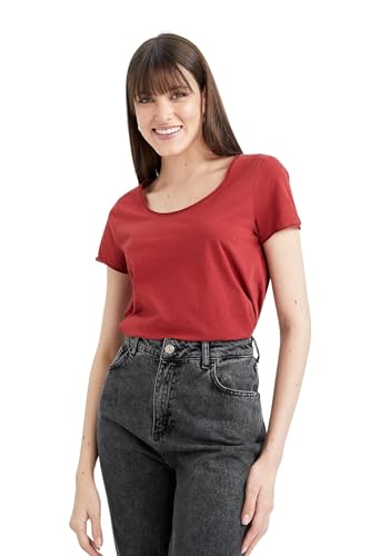 DeFacto dam-t-shirt – klassisk basic oversize skjorta för kvinnor – bekväm t-shirt för kvinnor, röd, XS