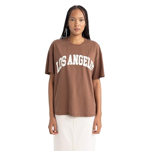 DeFacto dam-t-shirt – klassisk basic oversize skjorta för kvinnor – bekväm t-shirt för kvinnor, BRUN, L