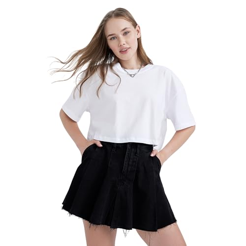 DeFacto damer oversize crop tops – klassisk baströja för kvinnor – bekväm oversize skjorta för kvinnor, Vit, S