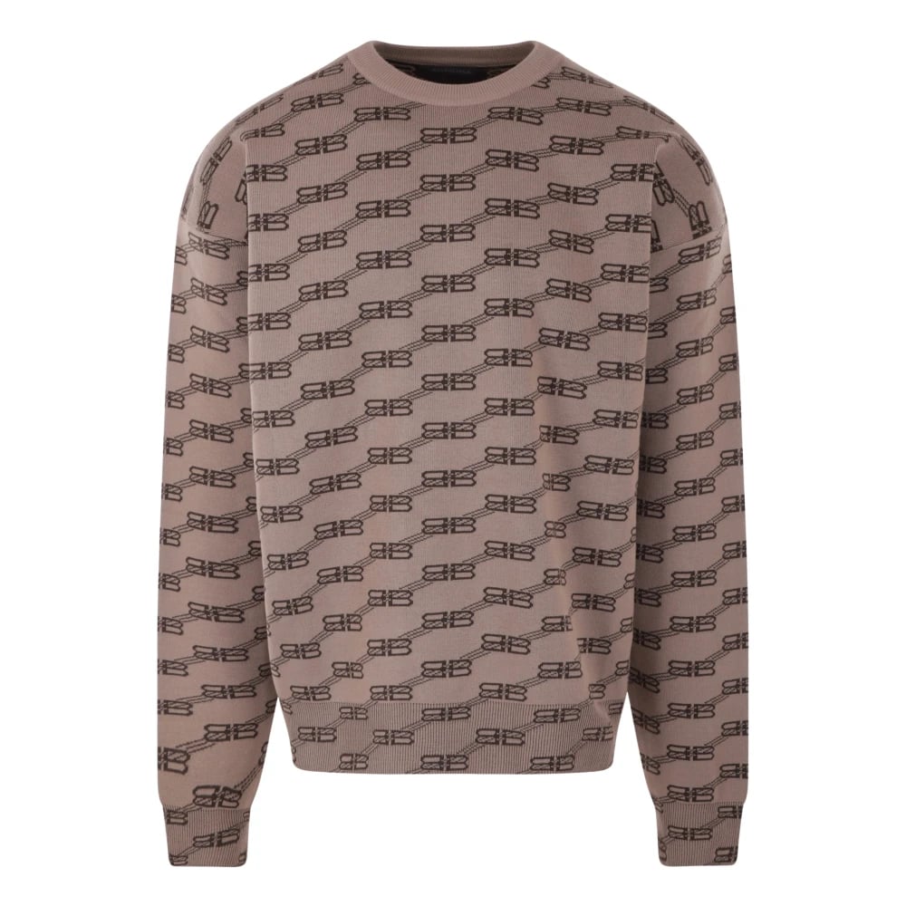 Balenciaga, Stickade Tröjor , Herr, S, Bomull, Oversize Tröja med BB Logo Jacquard