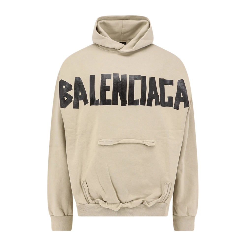 Balenciaga, Sweatshirts & Hoodies , Herr, XS, Bomull, Beige Huva Logo Tröja Oversize Bomull