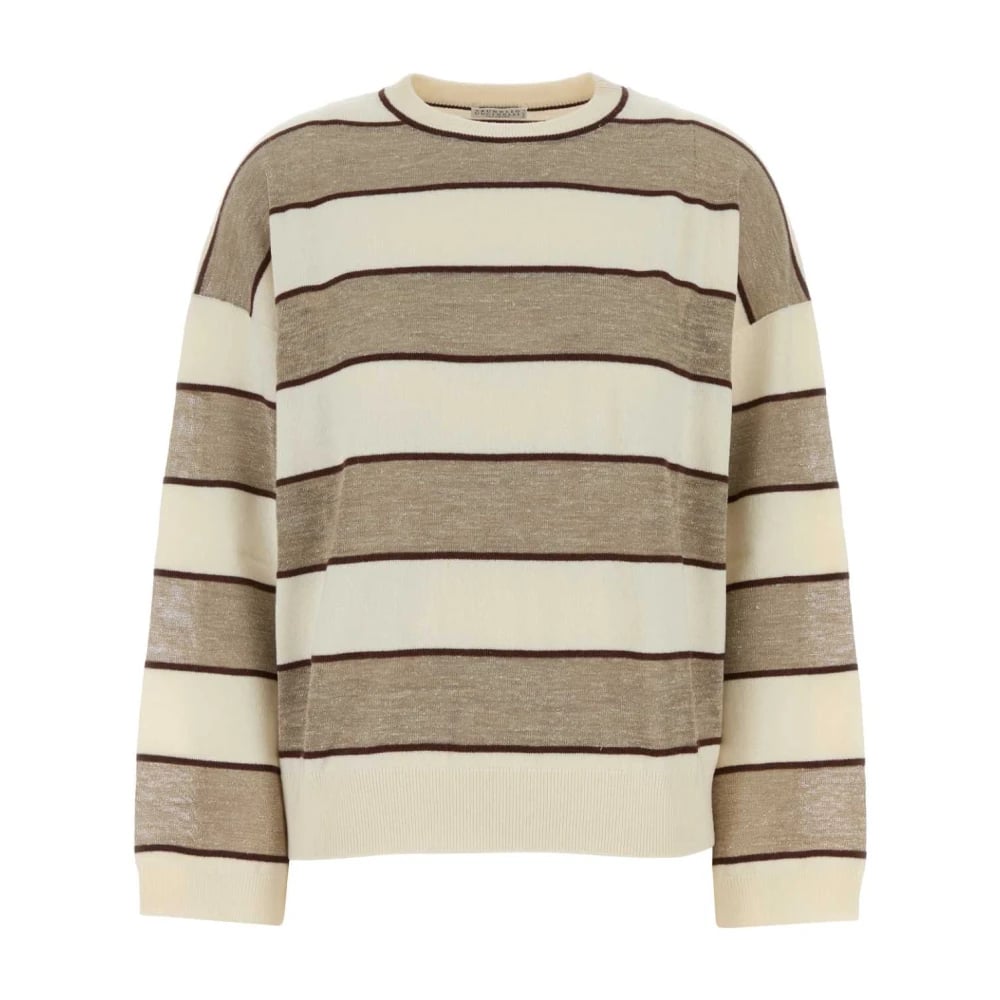 Brunello Cucinelli, Stickade Tröjor , Dam, M, Läder, Broderad Oversize-tröja i Ullmix