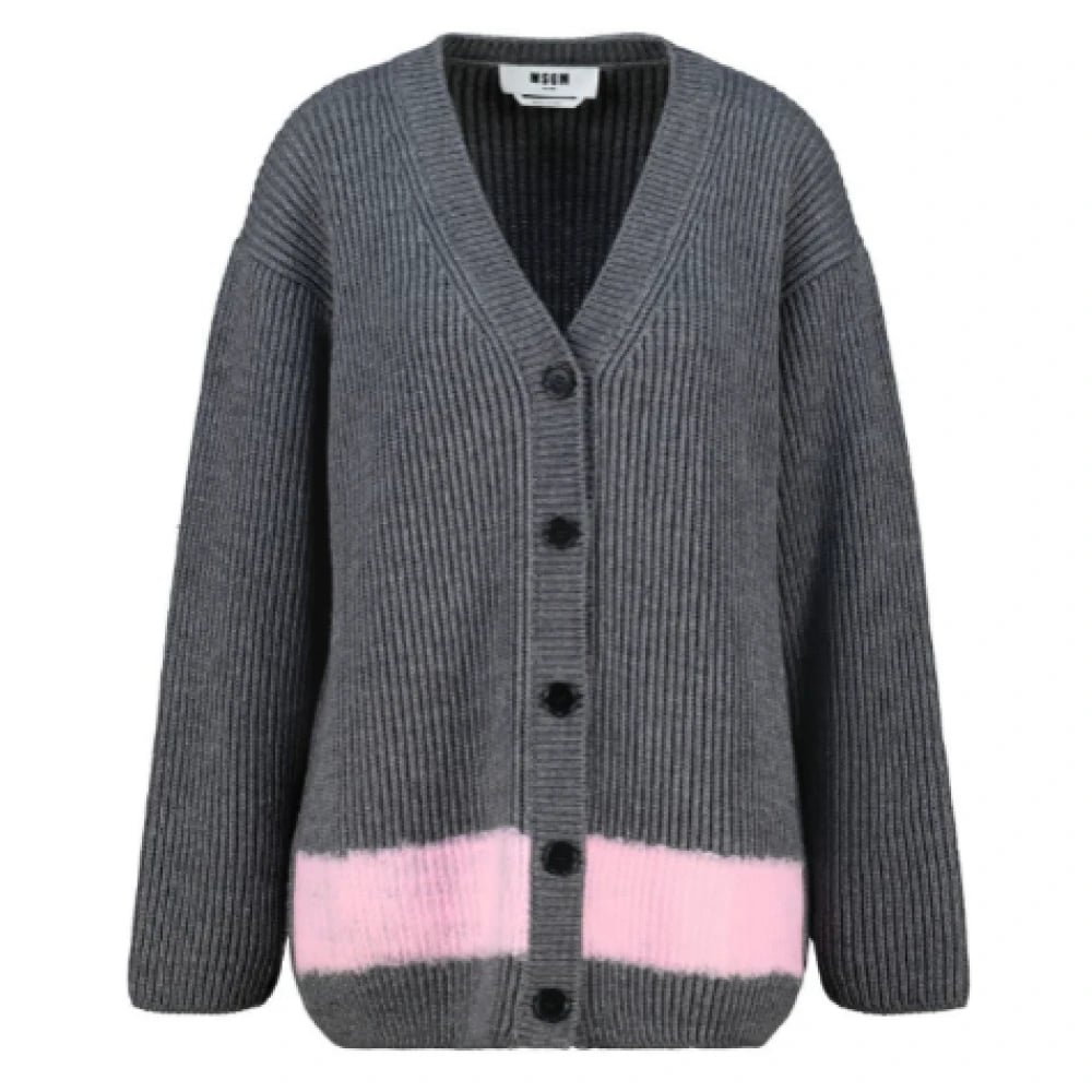 Msgm, Stickade Tröjor , Dam, S, Grå Ribbstickad Oversized Cardigan Sweater