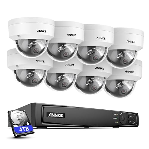 ANNKE H800 4K 16CH PoE övervakningskamera system med ljud och 8 x 8 MP IP67 vattentät PoE IP-kamera, IK10 vandringssäker, 3 TB för 24/7 inspelning inomhus, H.265 + videokomprimering, 30 meter mörkerseende