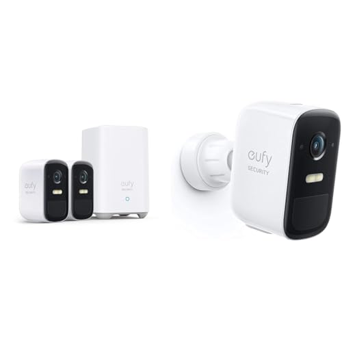 eufy Security eufyCam 2C Pro, Trådlös övervakningskamera, säkerhetssystem 180 dagars batteritid & eufy Security eufyCam 2C Pro, Ytterligare övervakningskamera att ansluta, kräver HomeBase 2