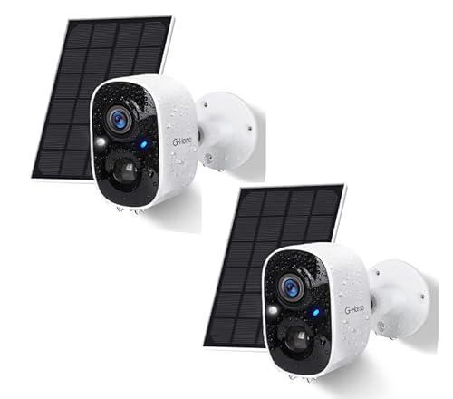 G-Homa Övervakningskamera utomhusbatteri med solpanel, trådlös WLAN-kamera utomhus, solWiFi-kamera övervakning utomhus, PIR rörelsedetektor, lång tid standby, moln/SD-lagring, IP65, 2-vägs ljud, 2 st