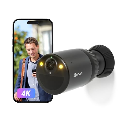 EZVIZ BC1c Kit 4K övervakningskamera Utomhus Wifi Batteri 10400 mAh, Wifi Kamera Trådlös med AOV-Läge, KI-Person-/Fordonsdetektering, Aktivt Försvar och Färg Nattseende