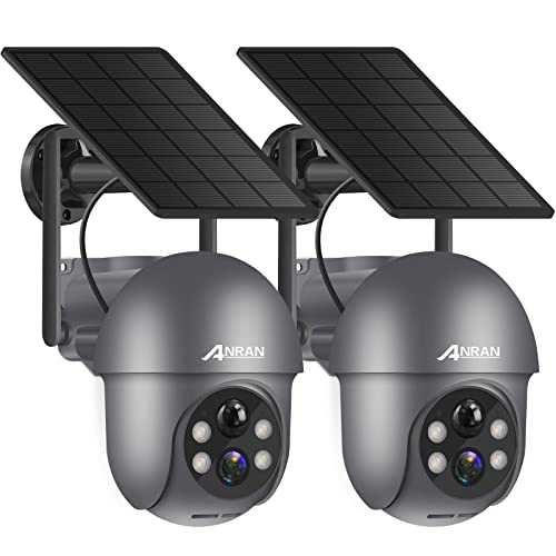 ANRAN 2 trådlös utomhus wifi övervakningskamera, 360° PTZ 2K 3MP IP-kamera batteri - solpanel, nattsyn, färg, mänsklig upptäckt, tvåvägsljud, kit 2 kameror, Q01 grå
