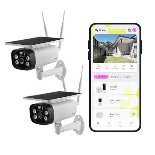 IHOXTX 2 WiFi-övervakningskamerakit med solpanel, trådlös utomhus-wifi-övervakningskamera, nattsyn, mänsklig detektering, året runt skydd, 1080p