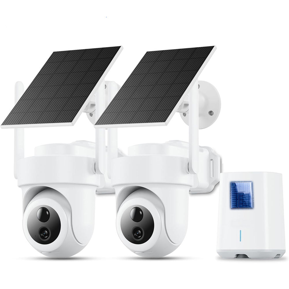 Trådlöst utomhus övervakningssystem – 2-pack med solpanel, batteridrivna, 4K ultra HD, 360° Pan & Tilt, Auto Tracking, 5G & 2.4G WiFi