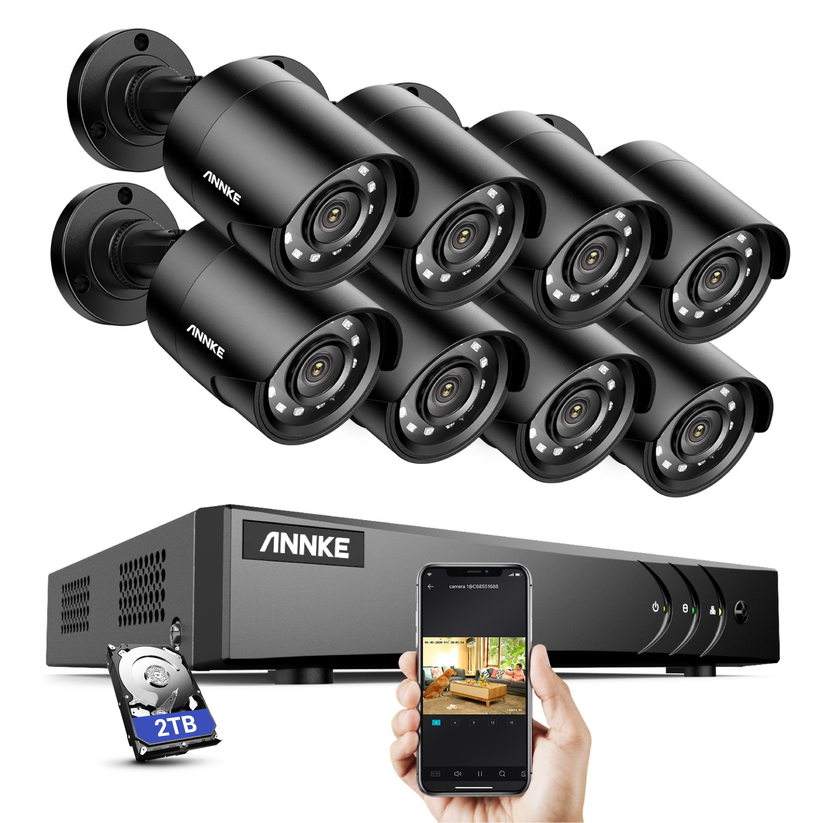 Professionellt Övervakningssystem 1080p, 8 Kameror, DVR, 2TB, EXIR Mörkerseende, IP66, motion detection