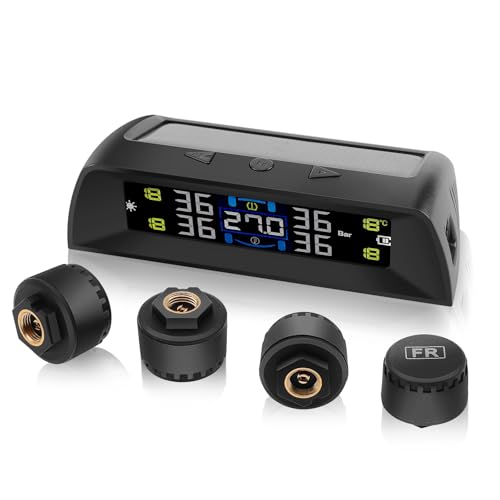 KAOLALI Övervakningssystem för däcktryck, TPMS med sol- och USB-laddare, 4 däcksensorer och 6 larmlägen, auto på/av, TPMS med färg-LCD-skärm, för RV, Sedan, SUV, MPV, etc (22-87 PSI)