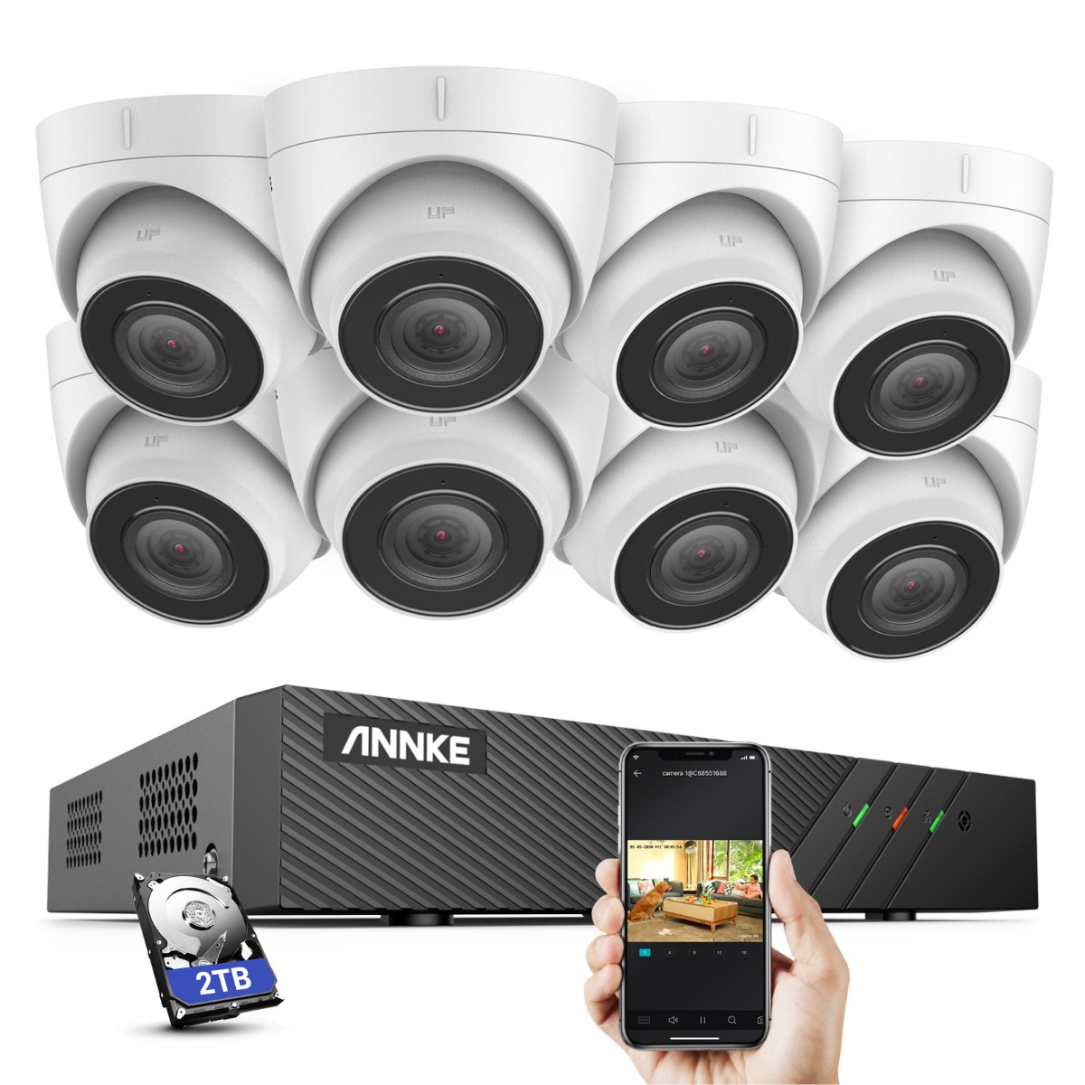 Proffs Övervakningssystem med 8st IP Kameror, POE, Push, IR Mörkersyn, ljud, NVR, IP67, 2TB, WIFI