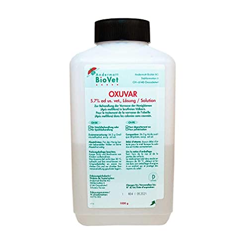 Andermatt BioVet OXUVAR® 5,7 – 1 000 g – oxalsyra för Varroa-behandling, varroamilva sommar och/eller som vinterbehandling 3,0 oxalsyradihydrat för sprutning av avlagringar, brutfri av konstsvärmar