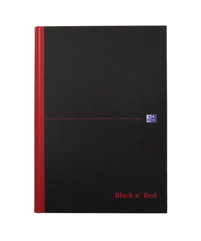 Oxford, anteckningsbok, inbunden, fodrad, (smalt linjerat), 96 sidor, 1 anteckningsbok, svart, röd, A4