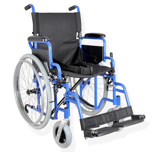 GIMA OXFORD Plus barnvagn, hopfällbar rullstol, bak- och framhjul, fällbart system, blått stål, svart tyg, vadderade armstöd, säte 51 cm, lastkapacitet 120 kg