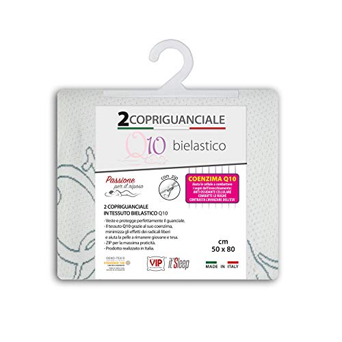 V.I.P. Very Viktigt Pillow Par CO-Bensin Q10 mikrokapslar örngott som skyddar huden mot åldrande, Stretch Jacquard tyg med dragkedja för kudde 50 x 80 cm