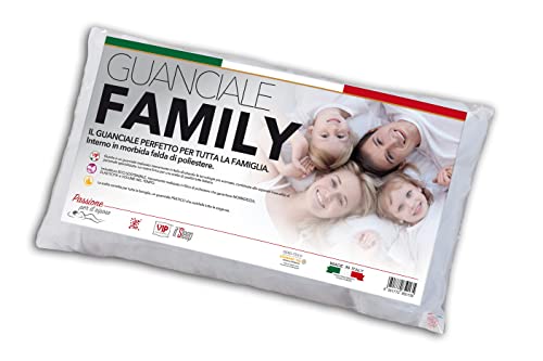 FAMILY kudde med kardat grundvatten 100% polyester rosett, 45x75, Medium Höjd, perfekt för hela familjen, Vit, Media Höjd, med örngott 65% Polyester + 35% Bomull
