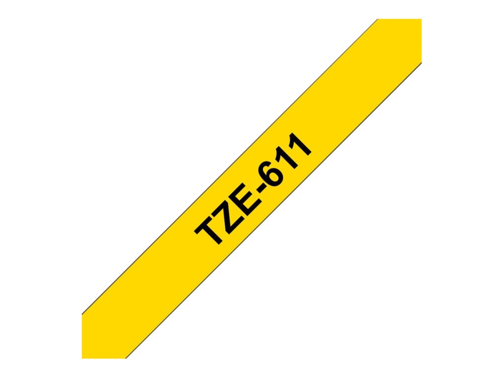 Brother TZe-611 – svart på gul – rulle (0,2 tum) 1 kassett laminerad tejp – för Brother PT-D210, D600, H110, P-Touch PT-1005, 1880, P-Touch Cube Pro PT-P910