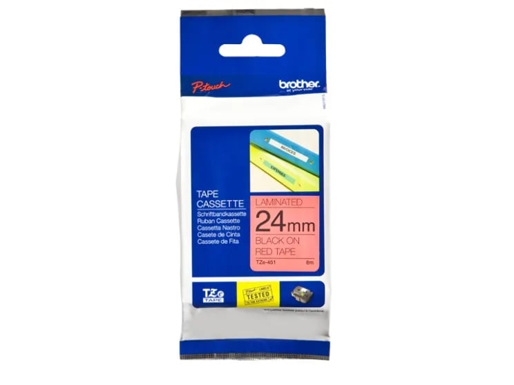 Brother Tze-451 - Självhäftande - Svart På Röd - Rulle ( 2,4 Cm X 8 M) 1 Kassett(Er) Bandlaminat - För P-Touch Pt-D800, P750, P900, P950 P-Touch Cube Plus Pt-P710 P-Touch Cube Pro Pt-P910