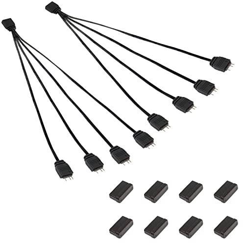 MEIRIYFA 5 V 3 stift ARGB delarkabel, 1 hona till 4 hanportar 3 stift adresserbar RGB splitter förlängningskontakt för ARGB LED-remsor, ARGB-fläktar med skyddskåpa – 2-pack