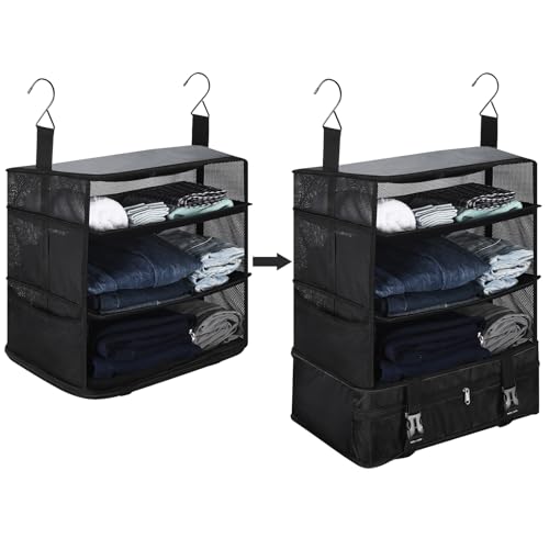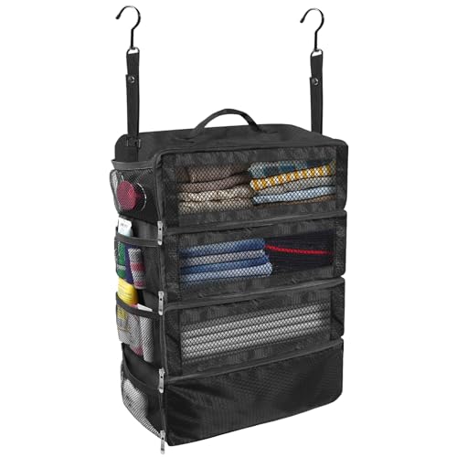 Olosar Resväska organiserare, resebagage organiserare, bärbara hängande reshyllor, hopfällbara hängande packkuber för handbagage resväskan, svart-M, modern