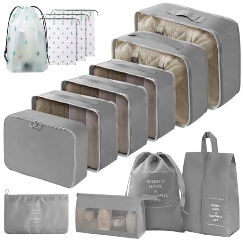 TXBOBECO 12-delat resväskearrangör-set, packningskubbar för resväska resetillbehör bagageorganisatör skopåse klädväskor packkuber kosmetika packpåsar (grå)
