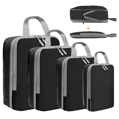 Kompressionsväska, packkuber kompression ultralätt researrangör, resväska förvaring kan uppfylla alla dina resebehov (svart, 4 stycken)