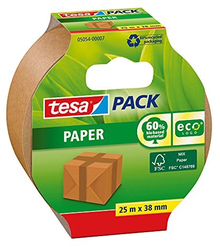 tesa ecoLogo packtejp - en miljövänlig och stark packtejp av oblekt papper - förslutning av bland annat kartonger - brun - 25 m x 38 mm