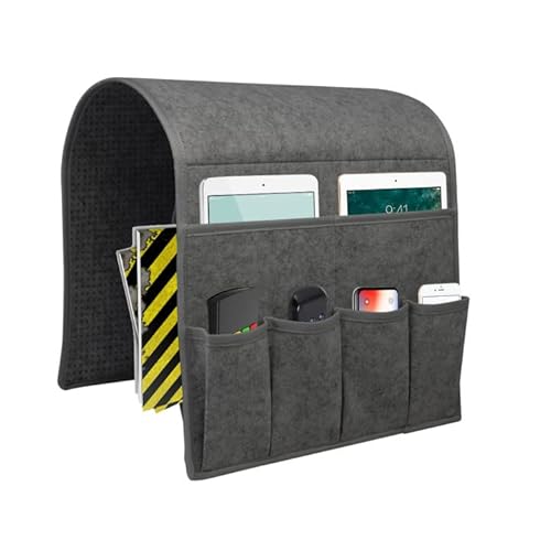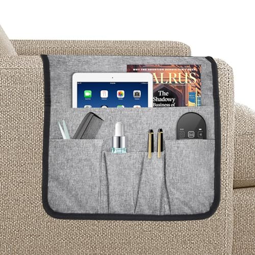 BLOOOK Sängsoffa armstöd organiserare med 6 fickor halkfri fåtölj caddie förvaringsväska fjärrkontrollhållare för vilstol soffa för iPad, tidskrift, TV-fjärrkontroll (medelgrå)