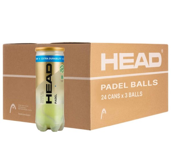 Låda med 24 burkar med 3 bollar Head Padel Pro +